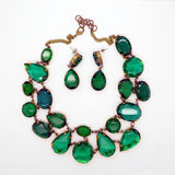 Czech Glass Emerald Green Cluster Statement Necklace and Pierced Earrings Set