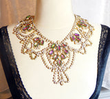 Czech Glass Huge Statement Watermelon Heliotrope Rhinestone Necklace