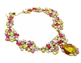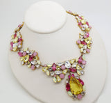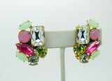 Czech Glass Pastel Rhinestone Pendant Necklace and Clip Earrings