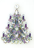 Christmas Purple and Clear Brooch, Vintage Rhinestones Xmas Tree Pin. Set in non-plated brass. This has purple clear glass faceted rhinestones. Measures 3" by 2" Excellent condition.