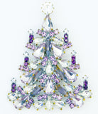Czech Glass Purple and Clear Christmas Tree Brooch, Vintage Rhinestones Xmas Tree Pin