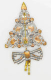 Czech Glass Red Rhinestone Christmas Tree Brooch with Dangling Ribbon