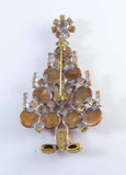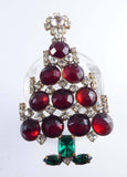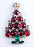 Czech Glass Red Round Glass and Rhinestone Husar D. Christmas Tree Pin, X-mas pin, Holiday Brooch. Set in non-plated brass. Measures 3 1/2" by 2" Excellent condition.