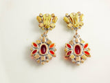 Czech Glass Ruby Red and Clear Rhinestone Clip Earrings