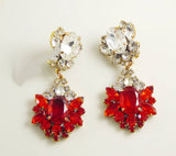 Czech Glass Ruby Red and Clear Rhinestone Clip Earrings. Set in non-plated brass. These have a ruby red and glass stones surrounded by clear Czech glass rhinestones. Measures 2 1/2" by 1 1/4" Excellent condition.
