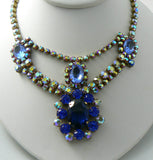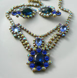 Czech Sapphire Blue Glass Necklace And Earrings Set