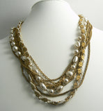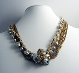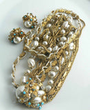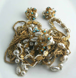 Early Miriam Haskell Gold Chain & Baroque Pearl Necklace Earring Set