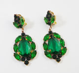 Emerald Green Czech Glass Huge Dangling Clip Earrings