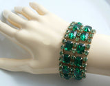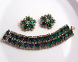 Emerald & Peridot Green Rhinestone Vintage Bracelet Earring Set