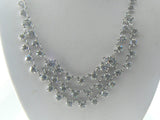Fabulous Vintage CLEAR STONES FESTOON DESIGN Necklace. Silver with sparkling crystal clear stones. Gorgeous festoon style design! The stones are unfoiled and in open back settings for loads of sparkle! Measures 15" Good condition with light age wear.
