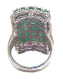 Genuine Emerald Ruby Gemstone Sterling Silver Ring, Marked 925. 14k white gold over sterling silver. Total weight 58.43 ct,. The face of the ring measures 3mm by 19mm. Size 8.5 Excellent condition.