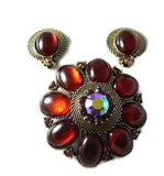 Gorgeous Red Lucite Pink Rhinestone Gold Mesh Demi Parure