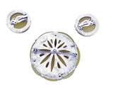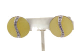 Hattie Carnegie Pale Yellow Glass Demi Parure. Set in silver tone metal. Signed Hattie Carnegie. This is a fairly heavy set, it is glass with pave rhinestones. The brooch measures 2" in diameter. The clip earrings measure 1" in diameter. Excellent condition. circa 1960's.