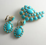 Hattie Carnegie Pin And Earrings Turquoise Blue Cabochons