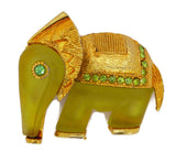 Hattie Carnegie Primitives on Parade Rhinestone Elephant Brooch. This is a well known unsigned Hattie Carnegie brooch. Lucite carved molded body with bright green rhinestones set in gold tone metal. Measures approximately 1 7/8" by 1 5/8". Pin is secure. Very good vintage condition.