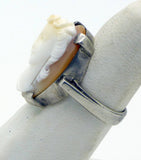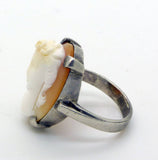 High Relief Sterling Silver Carved Shell Lady Cameo Ring, Size 6