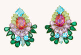 Huge Czech Rhinestone Multicolored Clip Earrings
