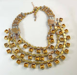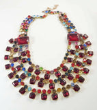 Huge Statement Multicolored Czech Glass Rhinestone 3 Row Necklace