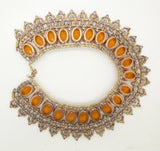 Husar D. Topaz Czech Glass Bib Style Necklace set in non-plated brass. Unsigned Husar D. Measures 15 3/4" (40 cm) plus 3" extension chain and is 1 1/2" (4 cm) wide. Excellent condition. Beautiful necklace.