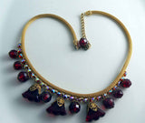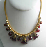 • Juliana Golden Mesh Red Rhinestone Dangling Bead Vintage Necklace, Book Piece - Vintage Lane Jewelry