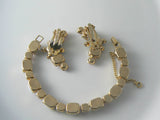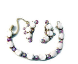Kramer White Milk Glass Pink Ab Rhinestone Bracelet Earring Set