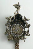 Large Figural Vintage Rhinestone Cuckoo Clock Brooch