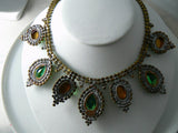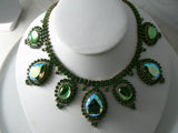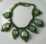 Large Green Ab Czech Glass Rhinestone Necklace
