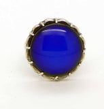 Liquid Crystal Glass Silver Round Bezel Set Mood Ring, Size 7. 18mm large round 925 mood ring. These are hard to find, this is not a plastic cabochon, it is crystal. The colors are more vibrant. Changes color based on your mood (body temperature). Excellent condition.