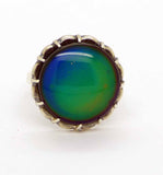 Liquid Crystal Glass Silver Round Bezel Set Mood Ring, Size 7