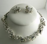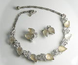 Lisner Molded Glass Leaves Rhinestone Necklace and Clip Earring Set
