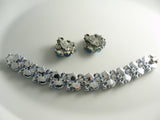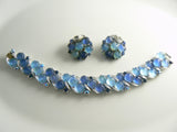 Lisner Shades Of Blue Molded Glass Rhinestone Bracelet Earring Set