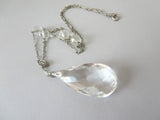 Lovely art deco 1920's era quartz rock crystal pendant on a sterling silver paper clip chain. The necklace measures 17" long and the quartz crystal beads in between the chain are 8mm. The huge rock crystal pendant measures 2" long and 1 1/2" wide. The crystal pendant is in great condition with no chips or bites. The spring ring clasp works great and it is hallmarked very faint sterling.