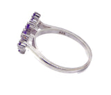 Marquise Amethyst Sterling Silver Cross Ring, 14 k White Gold Plate over 925 Sterling Silver. Stamped 925. Unheated amethyst. The stones measure 3 by 4 by 2 mm. The face of the ring measures 18 mm in diameter. Size 9. Excellent condition.