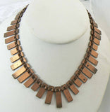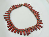 Matisse Red Enamel on Copper Necklace. Unsigned Matisse Renoir red enamel copper modernist necklace/choker. Measures 15" in length. Good condition with some darkening towards the edges of the red enamel.