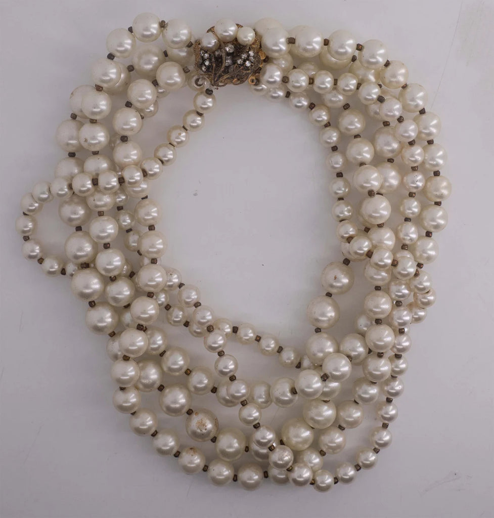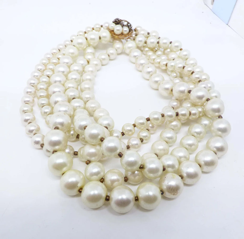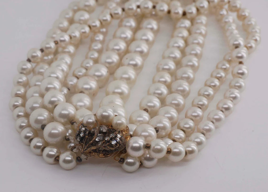 Miriam Haskell 5 Strand Glass Pearl Necklace