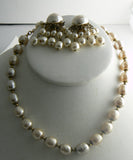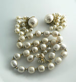 Miriam Haskell Baroque Glass Pearl Necklace and Large Dangle Earrings