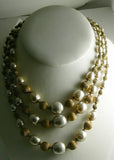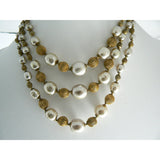• Miriam Haskell Baroque Pearl and Russian Gold Bead 3 Strand Necklace - Vintage Lane Jewelry