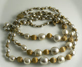 Miriam Haskell Baroque Pearl and Russian Gold Bead 3 Strand Necklace