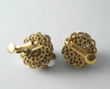 Miriam Haskell Gold Tone Filigree And Glass Earrings