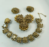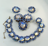 Miriam Haskell Moon Glow Blue Rhinestone Parure, bracelet, brooch and clip earrings