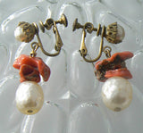 Miriam Haskell Natural Coral Baroque Pearl Necklace Earring Set