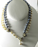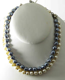 Miriam Haskell Navy Blue and Ivory Baroque Pearl Necklace