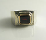 Modernist Men's Sterling Silver 14k Gold Inlay 3ct Ruby Ring