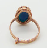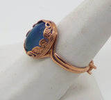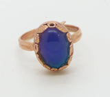 14 x 10mm mood stone set in a 24K Rose Gold Plated Brass Ring Setting with Twigs and Flowers. Bezel for 14x10mm Cabochon. Stamped 925 and JBB for the settings makers mark. Adjustable. Changes color based on your mood (body temperature). Excellent condition.