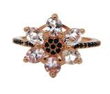Morganite and Black Spinel 14k Rose Gold over sterling Flower Ring