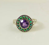 Natural Amethyst and Opal Sterling Silver Poison Pill Box Ring