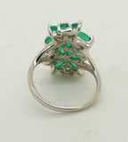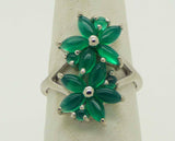 Natural Gemstone Aventurine Double Flower Ring, 14k white gold over sterling silver, Size 7. The stones measure 2.5 to 6 by 3 mm and the face of the ring measures 21 by 13mm Overall weight is 21.48 cts. Stamped 925. Excellent condition.