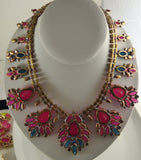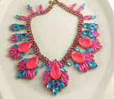 Neon Blue and Pink Czech Glass Stone Rhinestone Statement Necklace