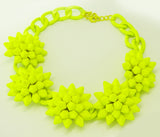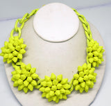 Neon Yellow Enamel Huge Cluster Necklace. This is metal necklace with bright neon yellow enamel, It's fairly heavy, Measures 20" in length including the 3" extension chain. Each cluster is 2 1/4" in diameter. Excellent condition.