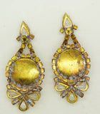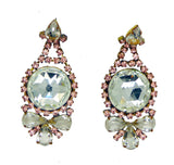 Pale Pink and Clear Rhinestone Bow Pierced Style Czech Earrings. Set in non-plated brass. These have a 21mm clear faceted round stone surrounded by pale pink rhinestones. Measure 2 3/4"" by 1". Very good vintage condition.
